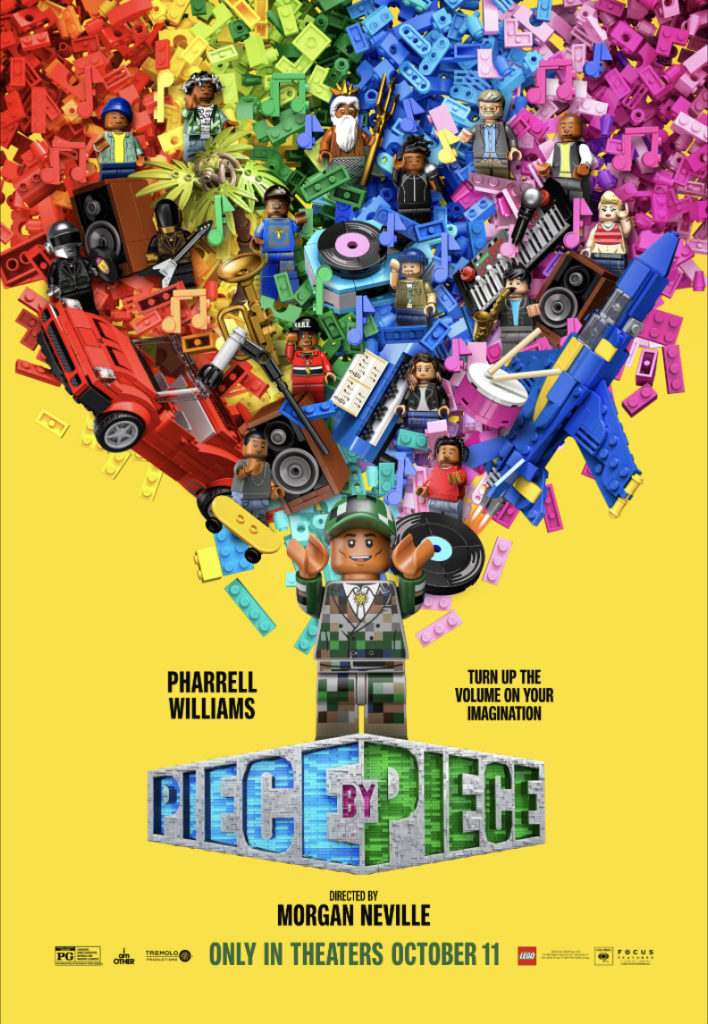Idag, den 11 oktober, har Pharrell Williams biopic Piece By Piece premiär på biografer runt om i USA. Den hyllade artisten och producenten, som har 13 Grammys och två Oscarsnomineringar på sitt CV, berättar sin livshistoria på ett unikt och kreativt sätt – genom LEGO-animation. Piece By Piece ger en inblick i Pharrells personliga resa och framgångar, där hans liv skildras genom färgstarka LEGO-karaktärer och animerade byggklossar.