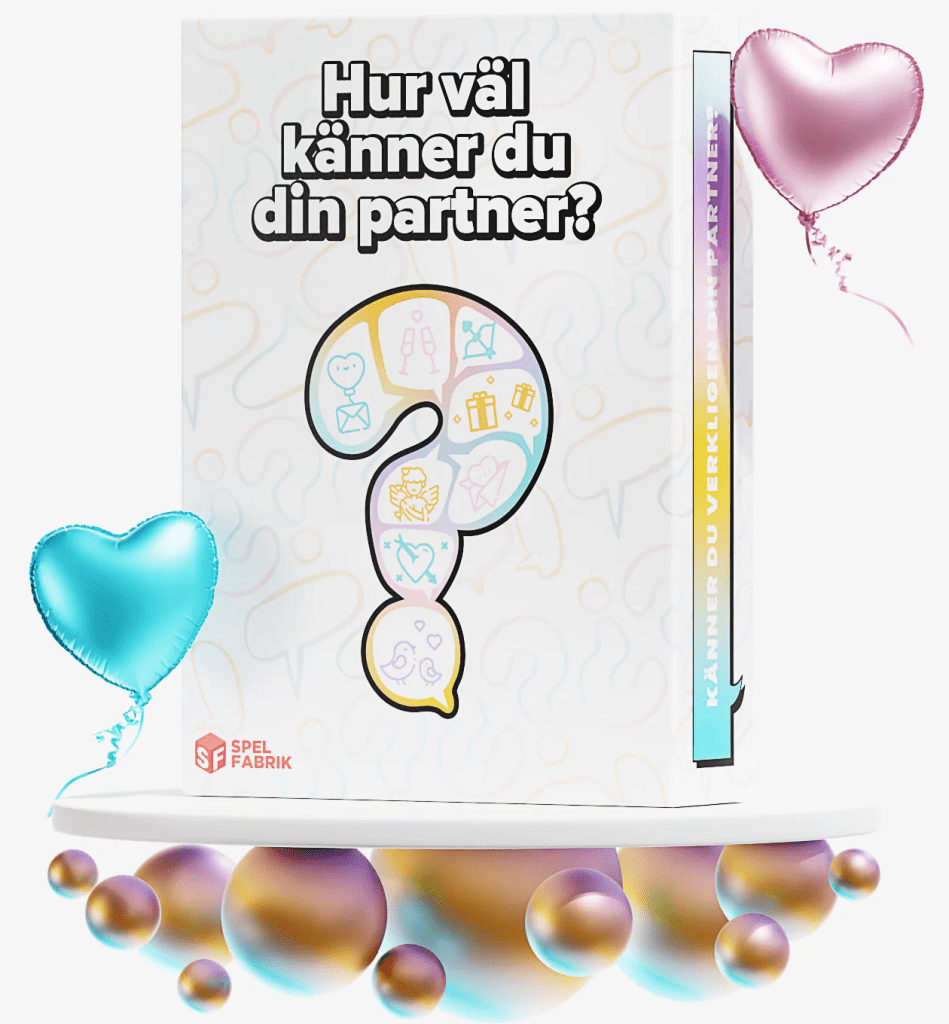 | Kmag tycker: Ett mysigt spel för par som vill testa hur bra de verkligen känner varandra. Ett kul inslag på festen – eller som en intim stund bara för er två. Vi på Kmag gillar Hur väl känner du din partner eftersom det skapar en mysig och rolig stämning samtidigt som det öppnar för djupare samtal och skratt. Spelet är perfekt för att stärka relationen och lära sig nya saker om varandra, på ett lättsamt och underhållande sätt! |